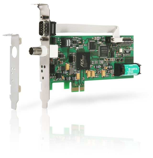 TCR511PEXは、PCI Expressインターフェイスをもつコンピュータ用に適した、„low profile“ボードです。コンピュータへのデータ伝送は、single PCI Express レーン (x1 board)にて行います。