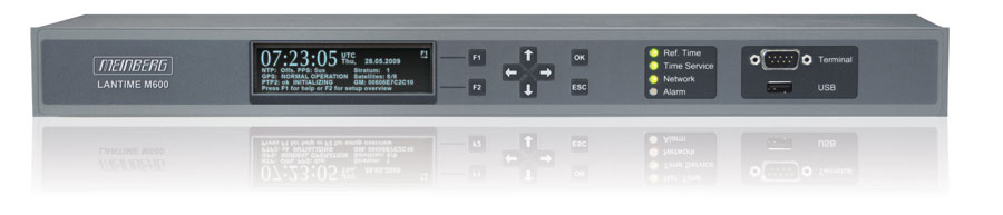 MeinbergのLANTIMEタイム・サーバM600/GPS/PTPv2は、内蔵Meinberg GPSラジオ・クロックを参照タイム・ソースとして使用し、すべてのPTPv2 / IEEE 1588-2008互換のあるクライアントと、NTPまたはSNTPが混在するシステムを同期することができます。安定性に優れ、精度の高いオシレータは、電波障害や一時的な受信の切断の際に冗長ソースとして利用されます。標準M600モデルでは、すでに様々なインターフェイスが利用可能であり、お客様のアプリケーションの特定要件に合わせてカスタマイズを行うことができます。